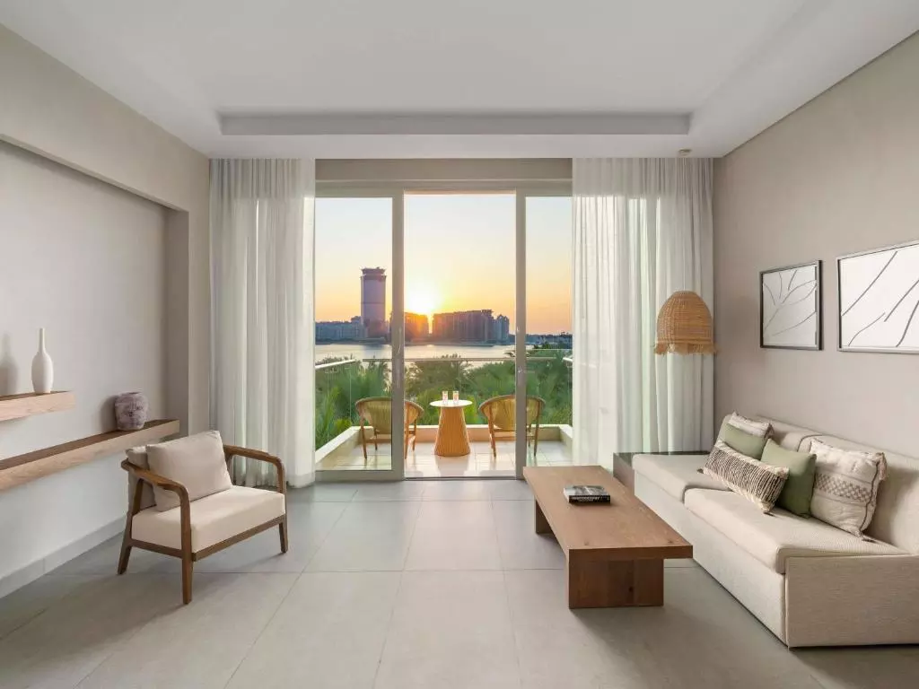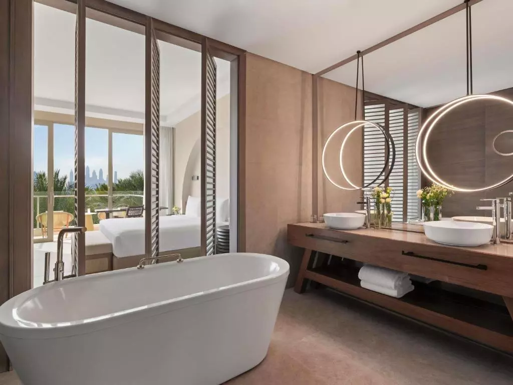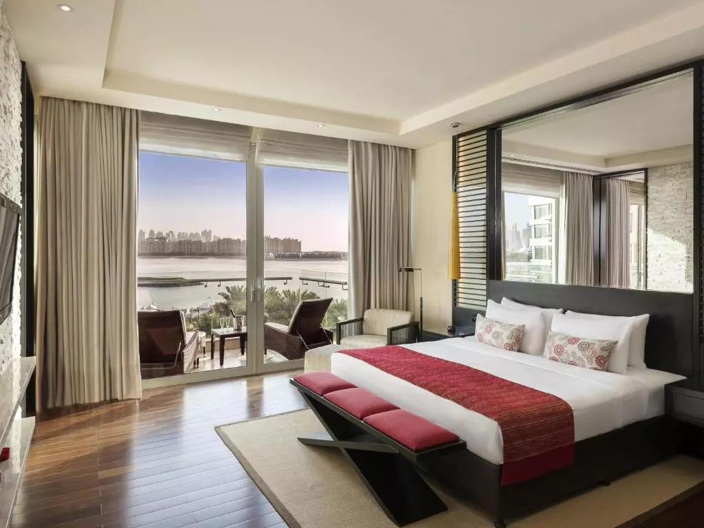 نمای پانوراما: به دلیل قرارگیری در انتهای نخل جمیرا، مهمانان از یک سو نمای خلیج فارس و از سوی دیگر نمای خیرهکننده خط افق دبی (Marina Skyline) را دارند.