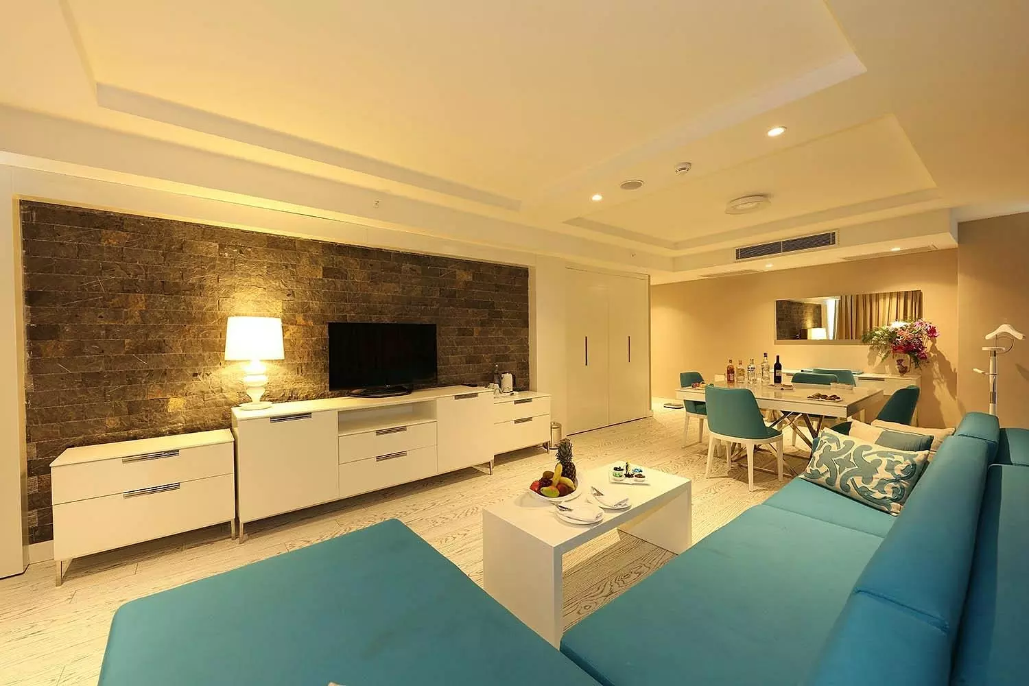 ساحل اختصاصی وسیع: دارای ساحل شنی اختصاصی با پرچم آبی و یک اسکله بزرگ (Pier) که دارای کاباناهای لوکس برای استراحت است.