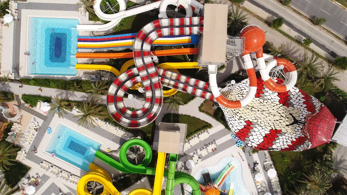 • پارک آبی (Aquapark) با سرسره‌های متنوع